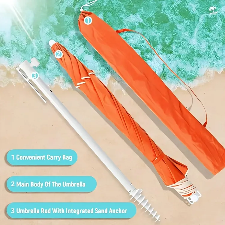 مظلة شاطئ مع مثبت رمل وآلية إمالة
