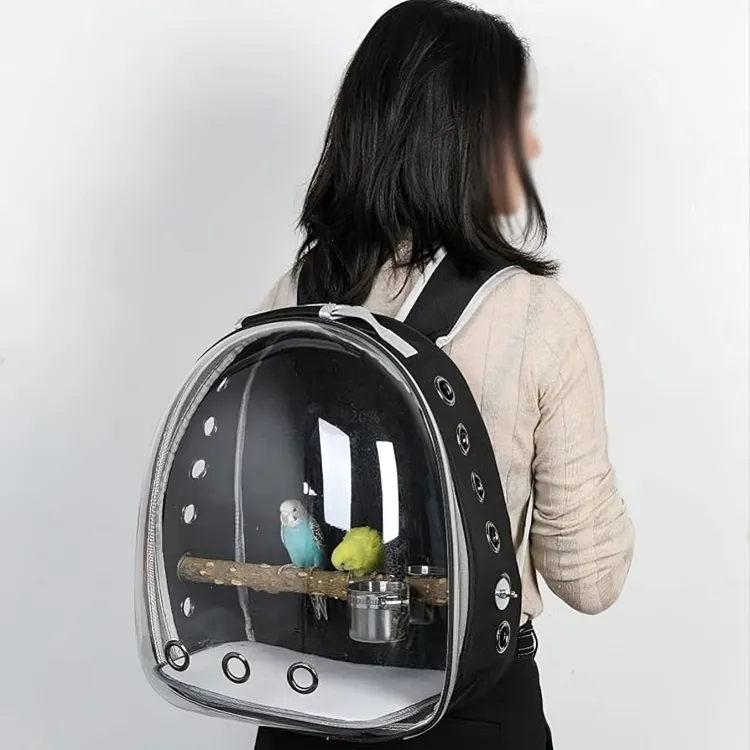 تصميم شفاف وجذاب يشبه كبسولة فضاء، يوفر حماية وآمان للطائر أثناء التنقل.نافذة شفافة تمنح الطائر إطلالة واضحة أثناء السفر أو التنزه.مزوّدة بـ 13 فتحة تهوية أمامية وجانبية لضمان تدفق الهواء الجيد.الغطاء الشفاف يحمي الطائر من الغبار، حبوب اللقاح، والفيروسات مثل الإنفلونزا.يمكن حمل الحقيبة باليد أو على الظهر بفضل الحزام المبطّن ومشبك الصدر الآمن.تتضمن الحقيبة: حقيبة ظهر للطيور، سجادة ناعمة، مجثم خشبي قابل للتثبيت بعدة طرق.