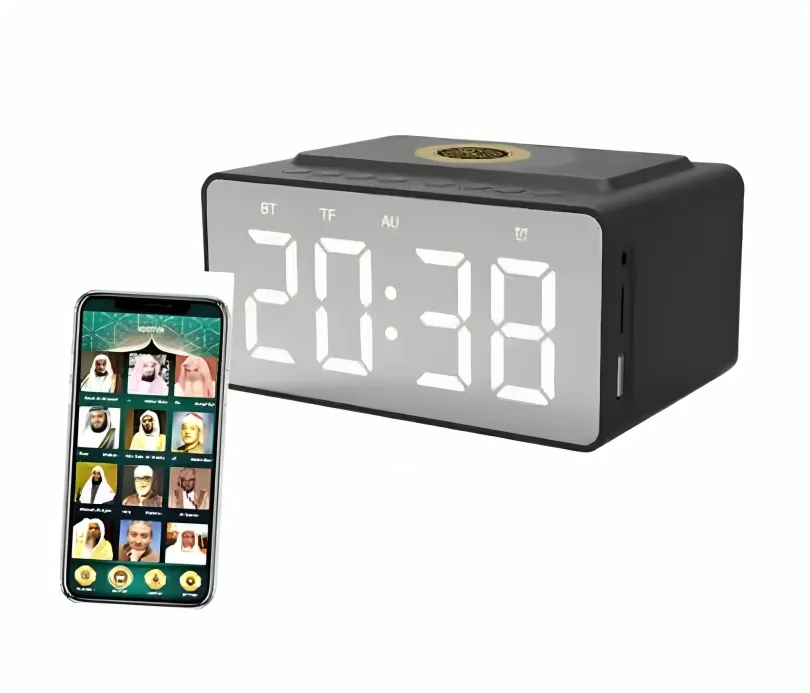 صوت 16 قارئًا للقرآن الكريم: تحتوي السماعة على صوت 16 قارئًا مشهورًا لآيات القرآن الكريم، مما يتيح لك الاستماع لأصوات مختلفة ومنوعة من قراء متعددين.أذان بصوت واضح وقوي: يتميز الأذان بصوت نقي وعالي الجودة، مع وضوح في الصوت، مما يسهل سماعه في أي مكان.تحتوي على الأحاديث والرقيه الشرعية والتفسير: إضافة إلى القرآن الكريم، تحتوي السماعة على مجموعة من الأحاديث النبوية الشريفة، الرقية الشرعية، وتفسير آيات القرآن، مما يساعد في التوجيه الروحي والتعليم الديني.تقنية البلوتوث: مزودة بتقنية البلوتوث، مما يمكنك من توصيلها بسهولة مع الهواتف الذكية والأجهزة الأخرى للاستماع للمحتويات المفضلة لديك.مدخل فلاش و AUX: تحتوي على مدخل فلاش USB ومدخل AUX لتشغيل الملفات الصوتية من خلال الفلاش أو التوصيل المباشر بالأجهزة الأخرى.لغات متعددة للقرآن الكريم: تدعم السماعة عدة لغات لتلاوة القرآن الكريم، ما يساعد في فهم معاني القرآن بلغات مختلفة.تصميم عصري ومتنقل: تتمتع بتصميم مدمج يسهل حملها واستخدامها في أي مكان، مما يجعلها مناسبة للاستخدام المنزلي أو أثناء السفر.سهولة الاستخدام: تحتوي على واجهة مستخدم بسيطة وسهلة، مع أزرار تحكم واضحة لتعديل الصوت والتنقل بين المحتويات بسهولة.مؤقت للإيقاف التلقائي: تتميز بإمكانية ضبط المؤقت للإيقاف التلقائي، مما يجعلها مثالية للاستماع أثناء النوم أو أوقات الراحة.شحن طويل العمر: بطاريتها طويلة العمر توفر وقت تشغيل مستمر لساعات طويلة، مما يسهل استخدامها لفترات ممتدة دون الحاجة لإعادة الشحن.