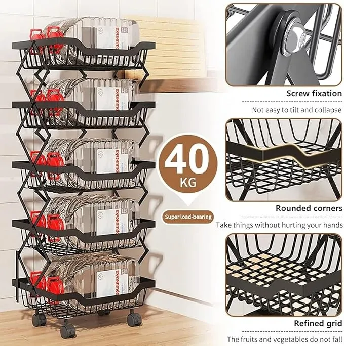 🛒【قوية ومتينة】سلة فواكه مصنوعة من معدن وبلاستيك عالي الجودة ومتين مقاوم للصدأ. السطح مطلي بطلاء عالي الحرارة، مقاوم للصدأ وغير سام وغير ضار. من أجل المتانة والقوة، ليس من السهل تشويهه. 🌽【لا يتطلب التركيب】 سلة الفاكهة لتخزين الخضروات القابلة للتمدد لا تتطلب خطوات تركيب معقدة. فقط اسحبها لأعلى واستخدمها مباشرة. يمكن تكديسها بسهولة ولا تشغل مساحة. 🥝【سهلة الحركة】 حامل السلة به أربع عجلات متينة، ويمكن تثبيته في مكانه بواسطة القفل الموجود على العجلات والذي يمكن تحريكه بسهولة في كل مكان. 🍊【مقاوم للصدأ وسهل التنظيف】: استخدام تقنية طلاء الخبز عالي الحرارة غير سام وغير ضار. الإطار المعدني سهل التنظيف ومقاوم للرطوبة وليس من السهل الصدأ وقوي ومتين. 🍄【متعدد الأغراض】سعة كبيرة، متعددة الطبقات، يمكن وضعها في مشاهد متعددة: المطبخ، غرفة المعيشة، الحمام. يمكن وضع الفواكه والخضروات، وزجاجات المياه والعلب، والصحف والمجلات، والوجبات الخفيفة والمشروبات، ولوازم الحمام، وما إلى ذلك.